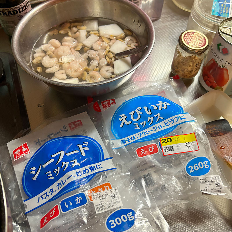 もしかしたら料理を作るより日々の献立を考える方が大変かもしれない。なので我が家は土日曜日に酒を飲んだ次の月曜日はリセットを兼ねて蕎麦(もしくは麺)、金曜日はスパイスカレーと決めている。明日、金曜日だった。スパイスカレー作った。アヒージョ用に買ったシーフード・ミックスの残りが2袋あったのでシーフード・カレーに。
