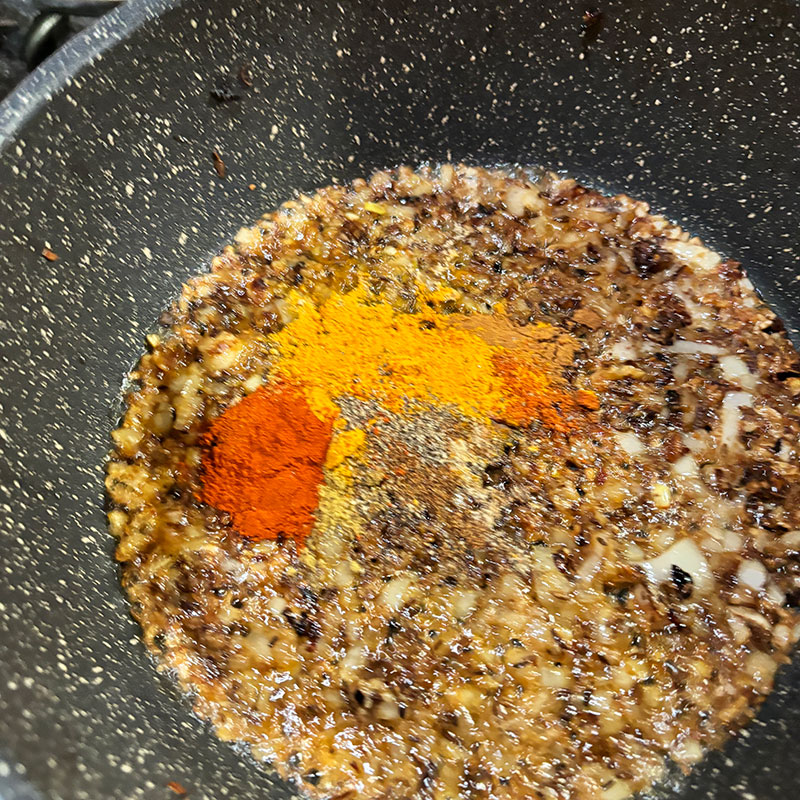 コリアンダーシードとグローブの歯触りがどうも苦手なのでシード・スパイスはクミンだけをテンパリングして