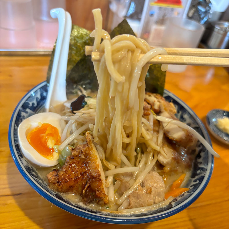 シャキシャキのたっぷりの野菜、豆乳の入った濃厚スープ、かなりの太麺、全部うまい。