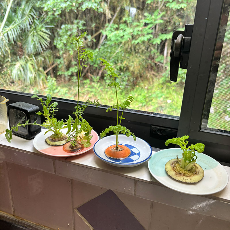 キッチンガーデンのにんじんに小さな小さな蕾が。