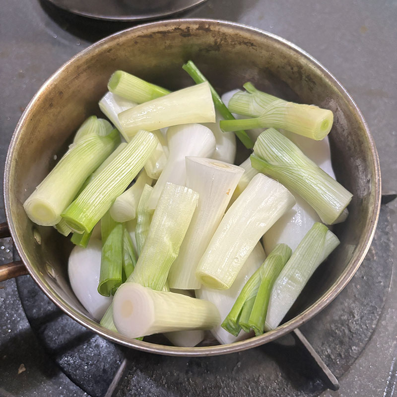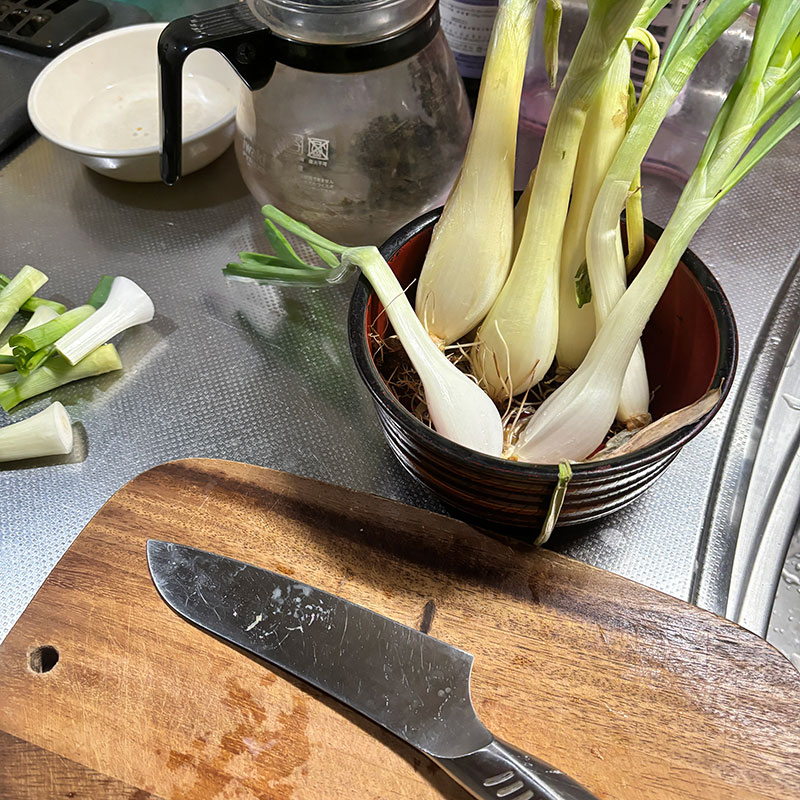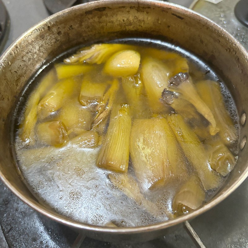 ふた株抜いて葉玉ねぎのコンフィ作った。