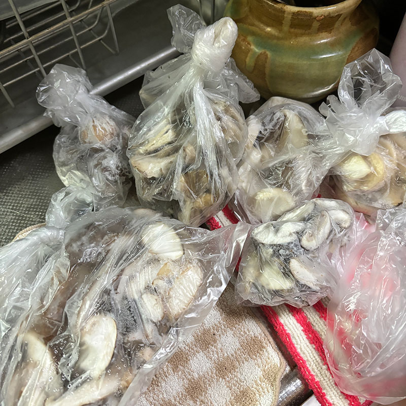 旨味が増すのでいつも冷凍庫に入ってるキノコからは