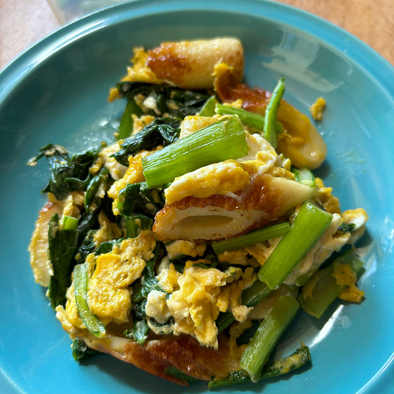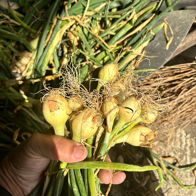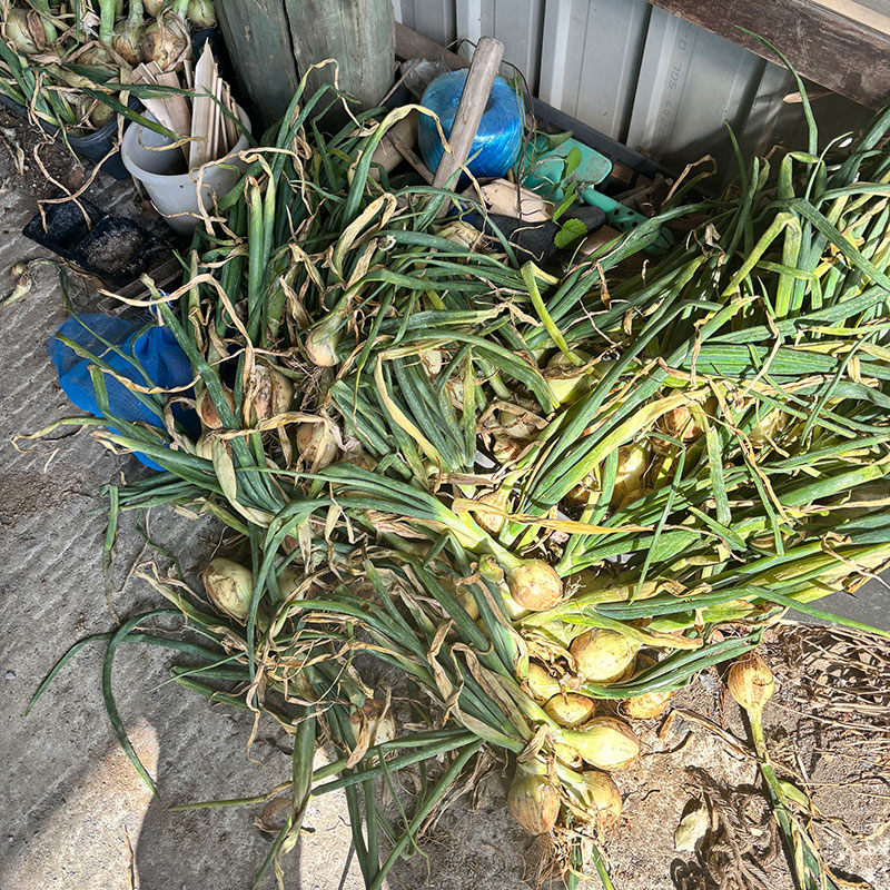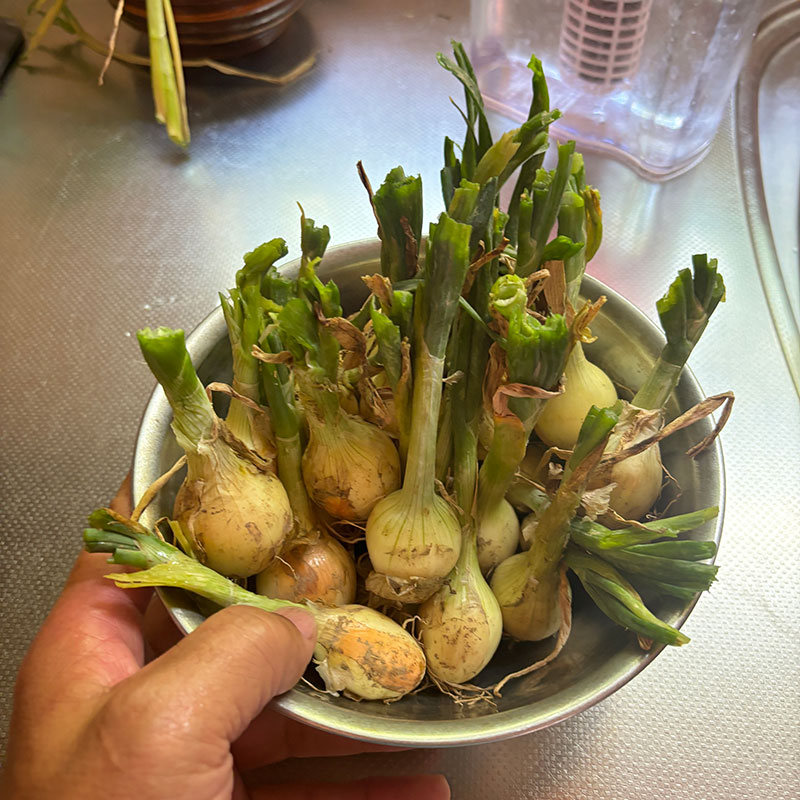 収穫して食べきれなかった畑の葉玉ねぎも一緒に入れてしまう。