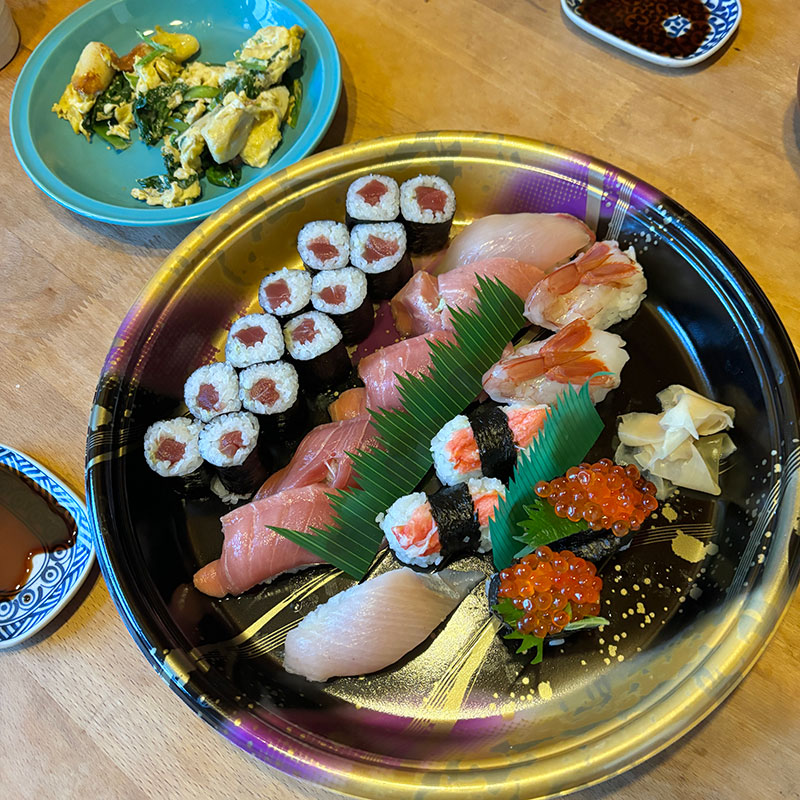 田植え終わったお祝いにお寿司いただいた。