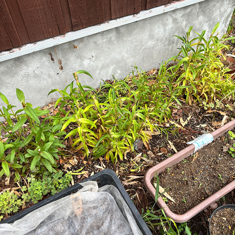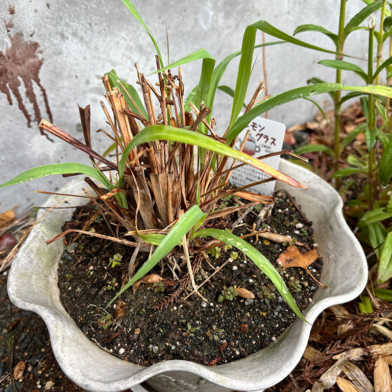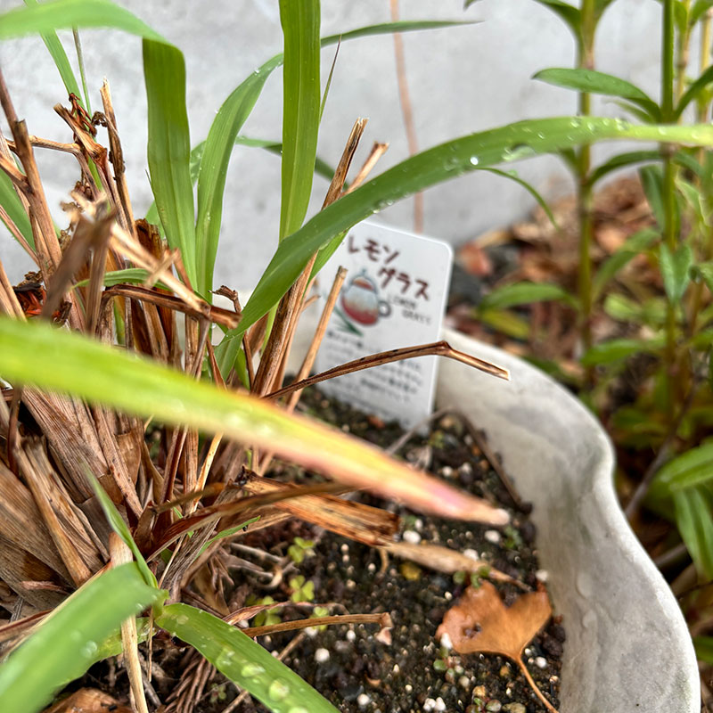 夏にバタフライピーと合わせて爽やかなハーブティーで楽しんだレモングラス。露地に植えたままのは冬越しできなかったみたい。春になっても芽が出てこない。剪定して藁を被せてマルチングしないと東北では無理みたい。
