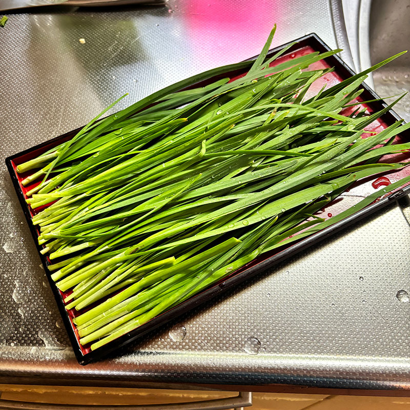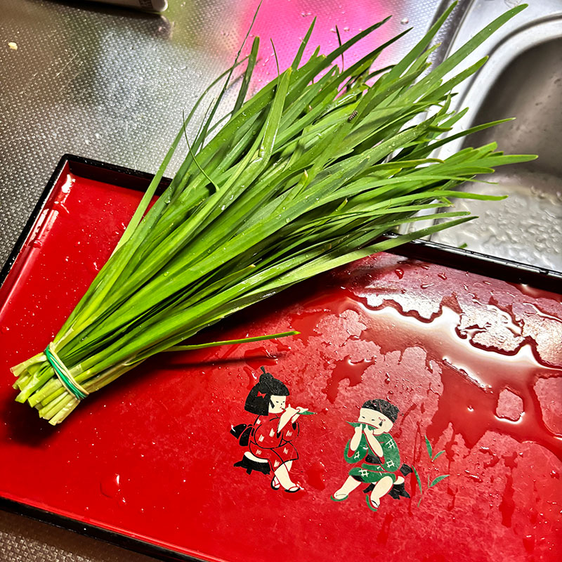 カミさんが今宵、肉野菜炒め作るというので畑のニラを収穫しておく。放ったらかしで毎年生えてきて刈ってもまた出てきて夏まで食べられるうちの畑の優等生。先日一度全部刈り取ったので収穫もしやすい。