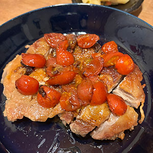 鳥もも肉のソース美味しくて最後ご飯入れて〆に食べた。うまー。