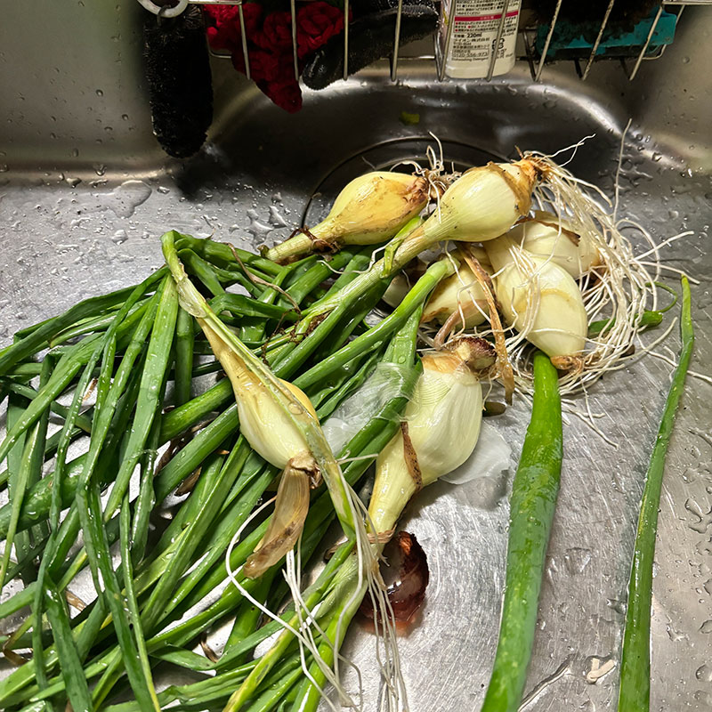 畑の葉玉ねぎも食べてしまわないと夏野菜が植えられないので
