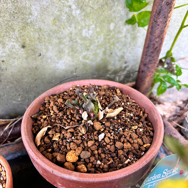 とりあえず、きちんと形と色良く育て直そうと思ってるハオルチアオブツーサ植えてみた。