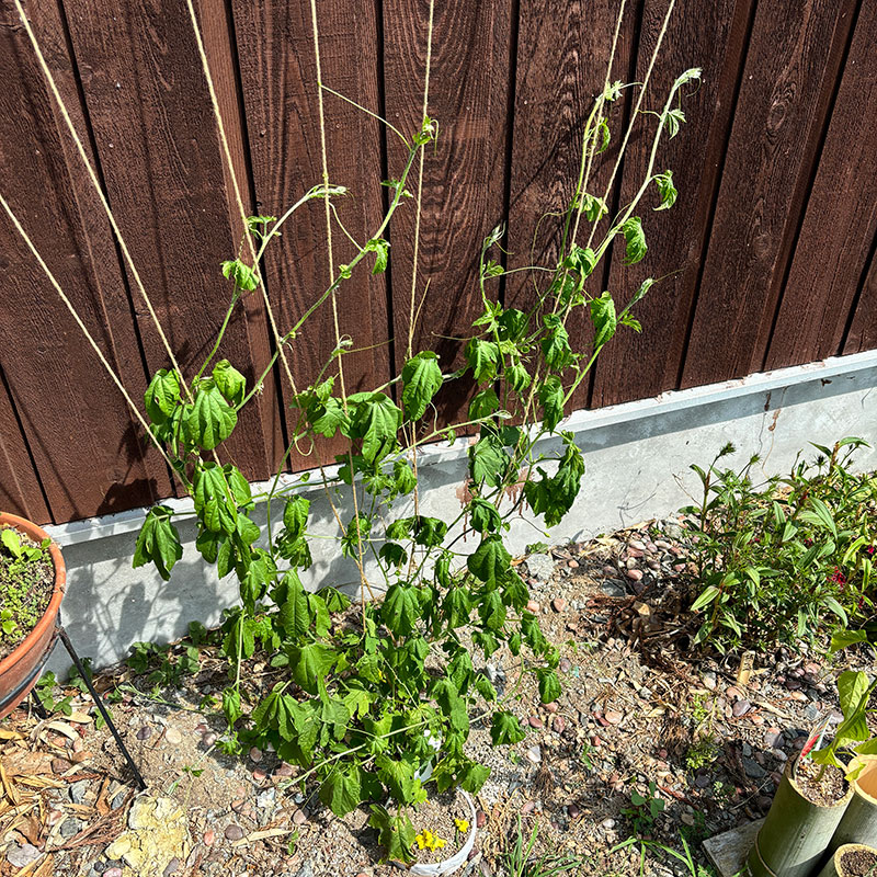 緑のカーテンにするので葉に栄養が行くように花はどんどん摘んでいる。小さいけどすでにゴーヤの実の形