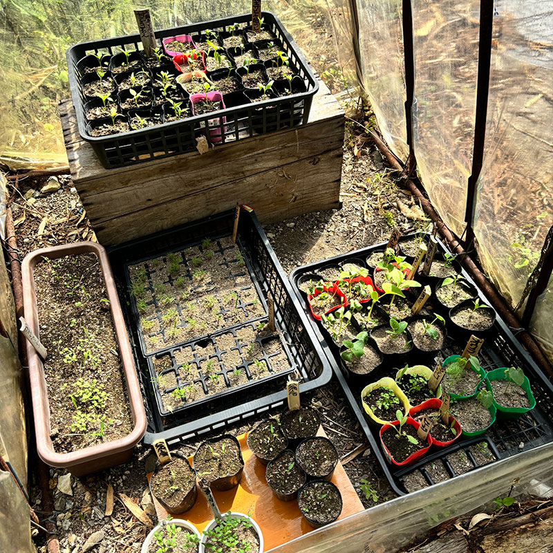 今日の #庭の猫の額ハウス 出番を待ってるのは万願寺とうがらし、万願寺とうがらし、ホーリーバジル(オオヤトゥルシー)、コキア、鷹の爪、ハラペーニョ、プリンスメロン、夕張メロン、ここまで全部自家採種、購入種の万願寺とうがらし、フェンネル、ディル、セージ、パセリ、オクラ。