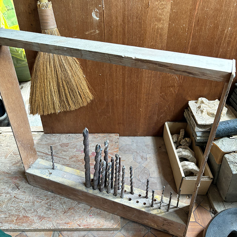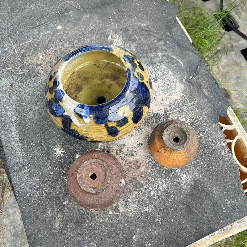 なので底に穴を開けて花器にする。20代の頃の作品を割って壊してしまったら惜しいのでハンマードリルのハンマーを切ってSLOWモードで作業したにしても苦労した。