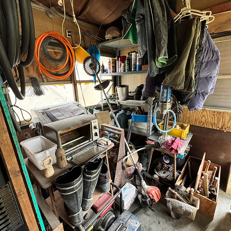 仕事場の道具置き場にしてるプレハブ小屋の