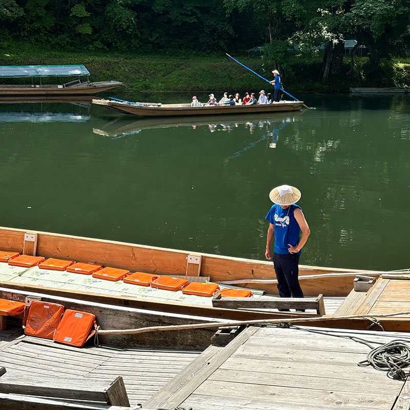 流れな緩やかなので日本で唯一竿一本で舟上り(流れを遡る)、