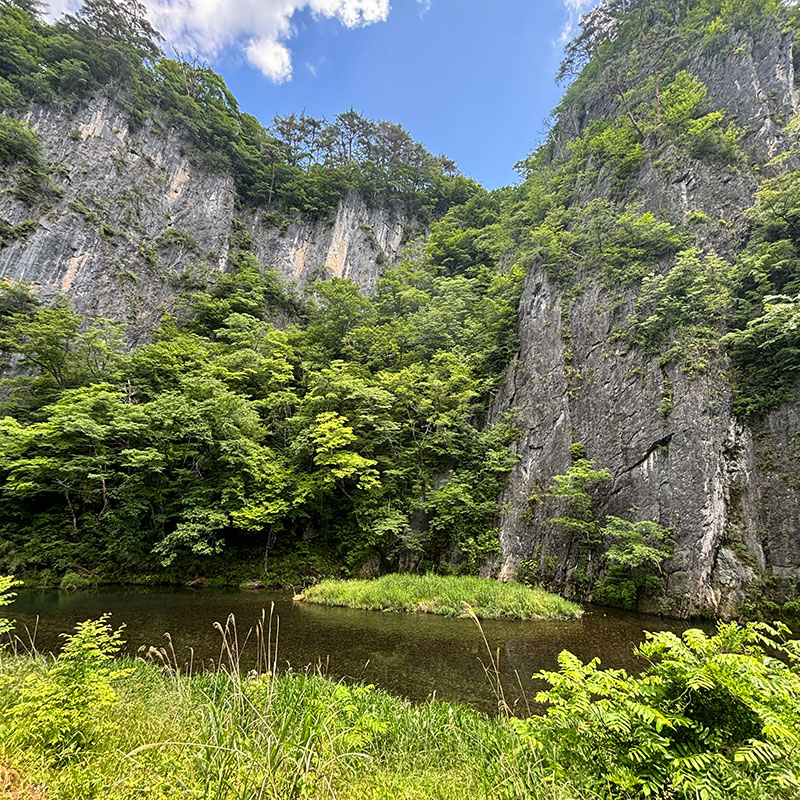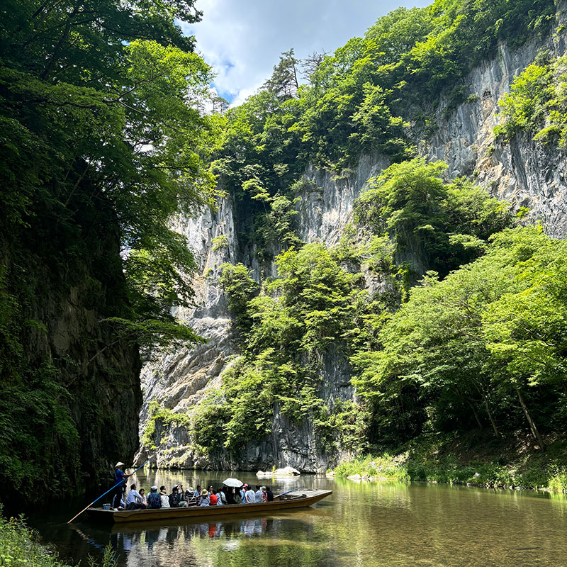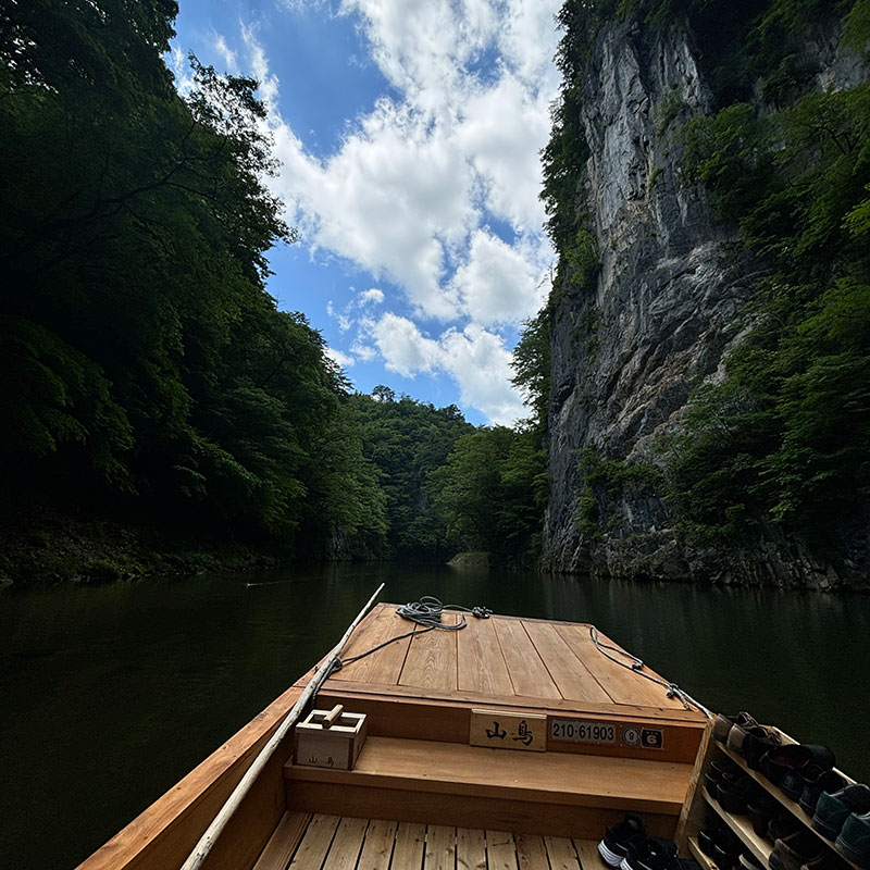 猊鼻渓の舟下り。折り返し地点で下船しての散策編。