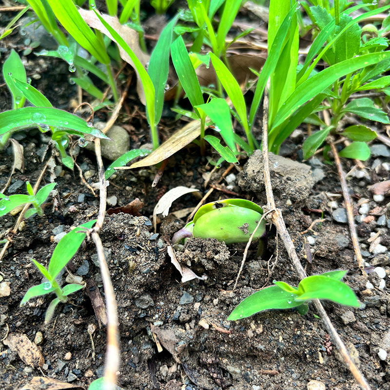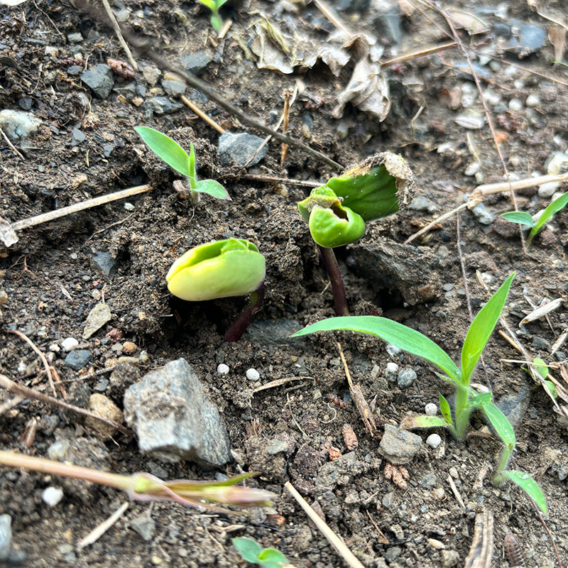 双葉で間引きしてあちこちに植え直してるひまわり。本葉が出てきた。