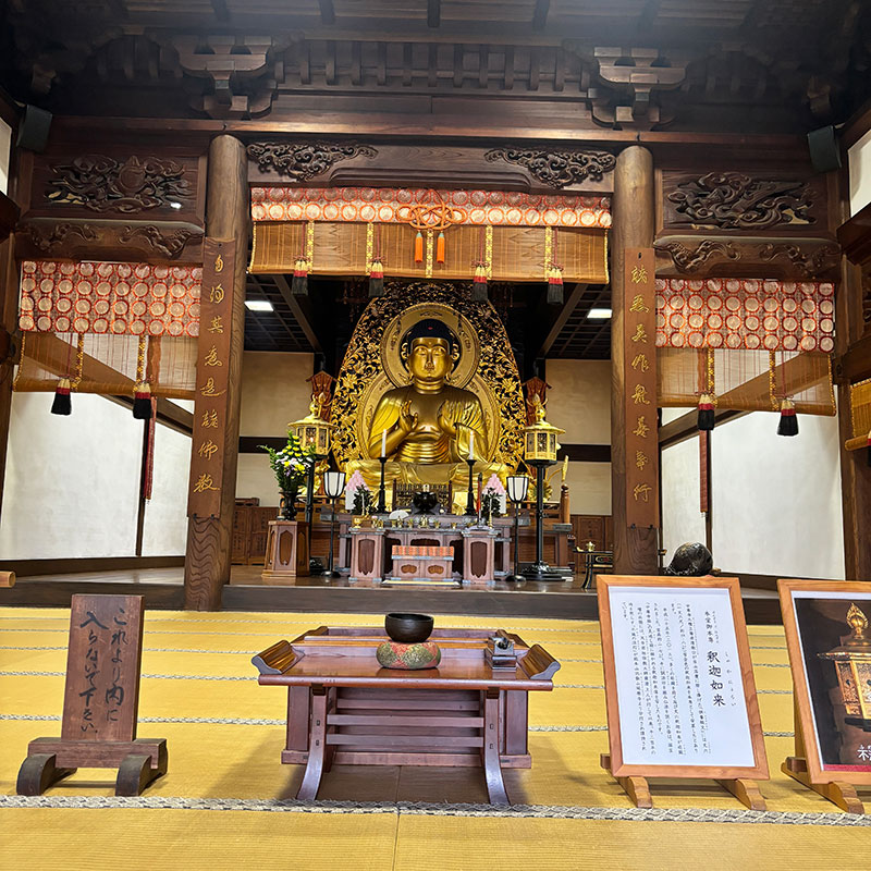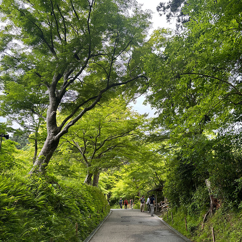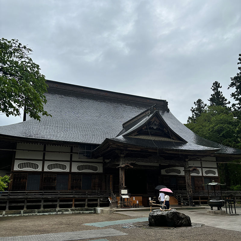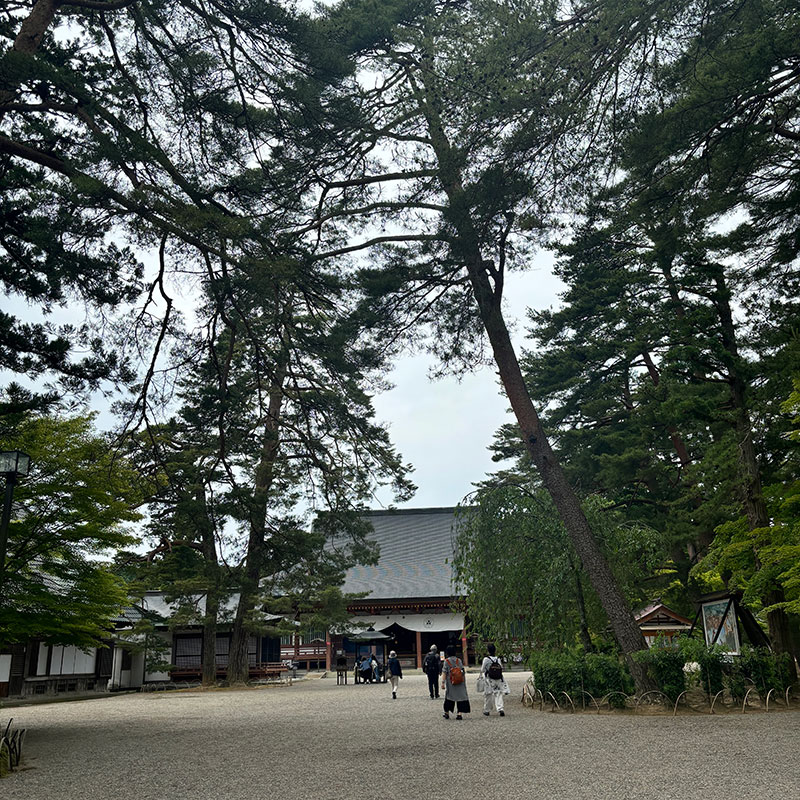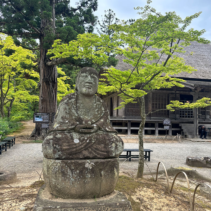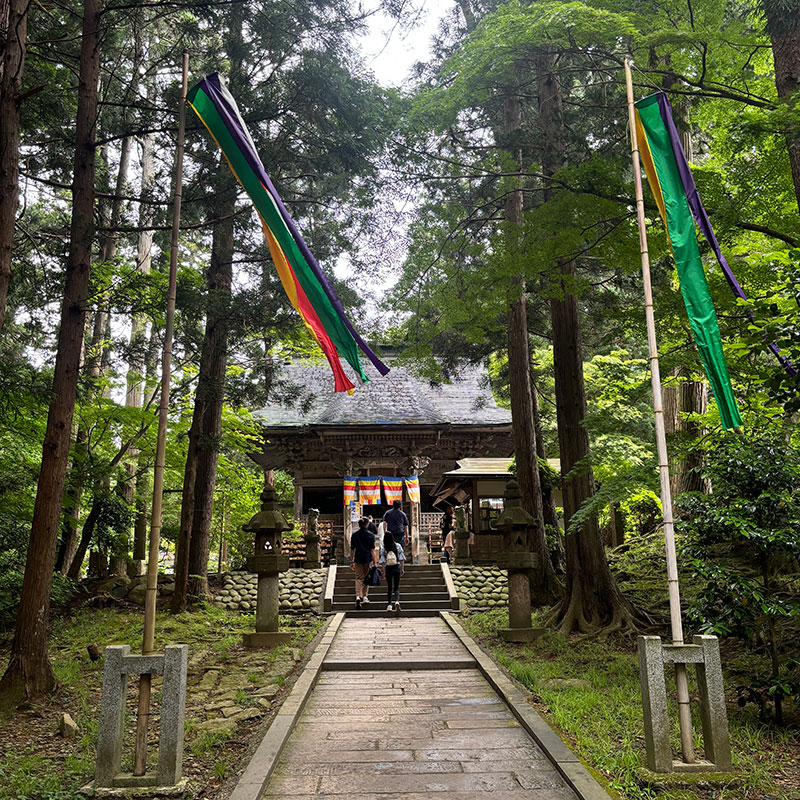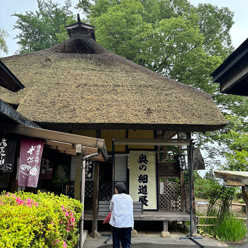 雨で寒くなって境内の茶屋でぜんざい食べて温まる。