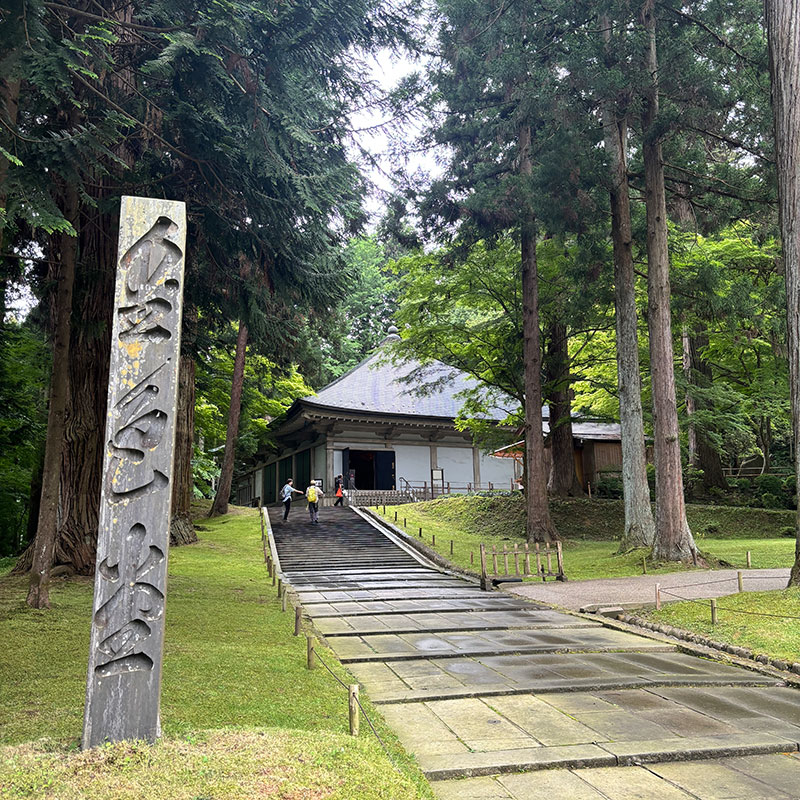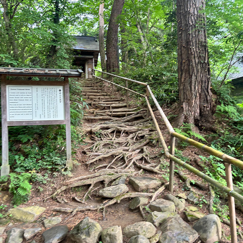 中尊寺の金色堂の近くに杉の根と階段が渾然一体となっているところがあった。