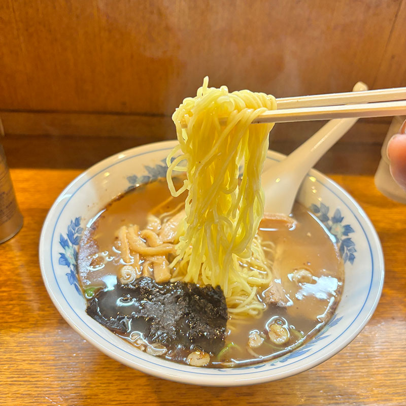丸長でラーメン。600円。泊まってるビジネスホテルから徒歩10歩でこんなに美味しいラーメンが食べられるなんて。