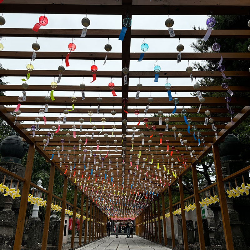インスタ映えの風鈴と風車。風が無くて風車全然回ってくれない。