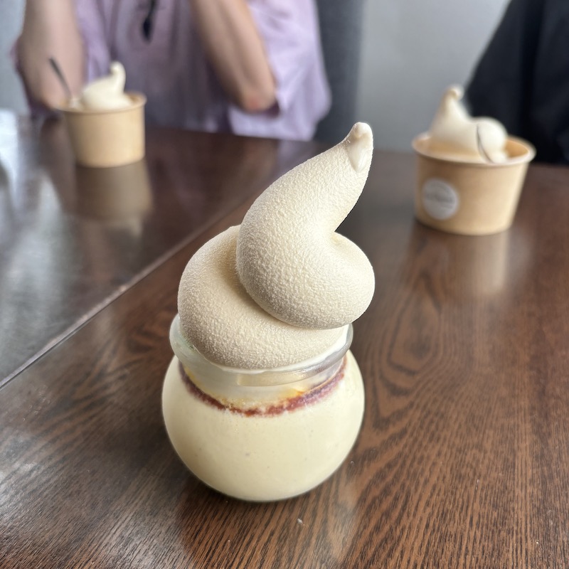 ソフトクリームも絶品なので自家製プリン×モコモコソフトクリーム(焦がしキャラメルソフト)ピザもソフトクリームも美味しいのは知っていたけど自家製プリンが美味し過ぎ!