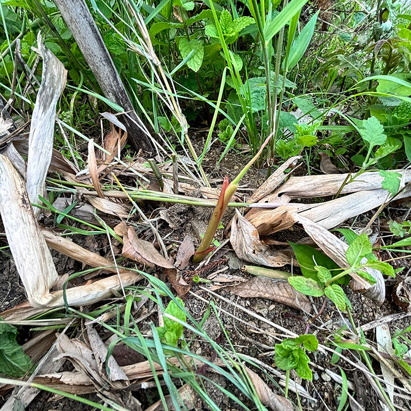 地植えにした沖縄の月桃。枯れてしまって東北での冬越しは無理だと思っていたけど