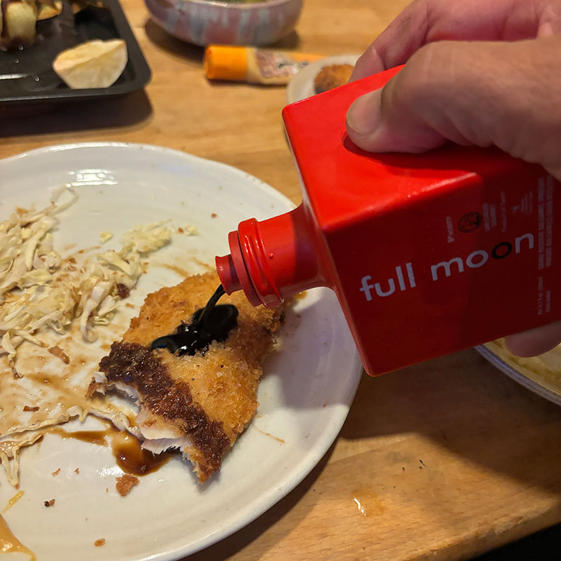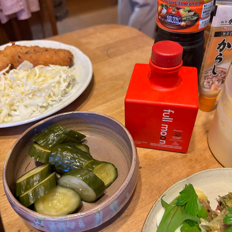 ソースで食べたあと、ヴァルサミコビネガーで味変。絶対この方が美味しい。幼なじみの眞由美さん( @shoe.education )さんがくれたオーク樽で12年以上熟成させた”full moon”だからだろうけど。