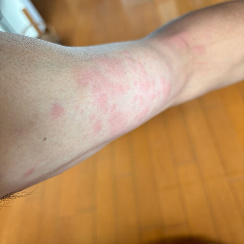 僕は漆か虫にやられたか?左腕に赤い斑点がいっぱい。痒い、痒い。