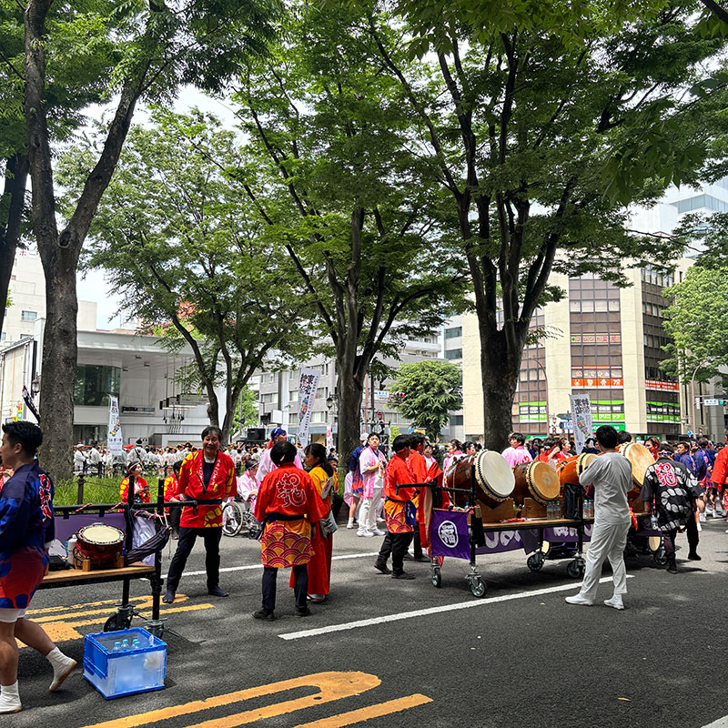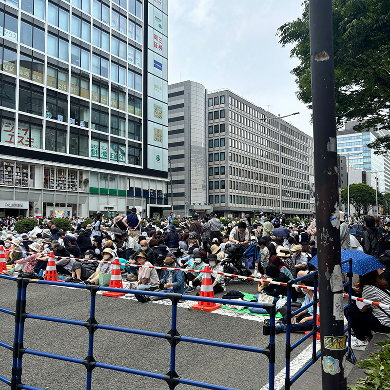 仙台の8車線のメイン道路を通行止めにして桟敷にして