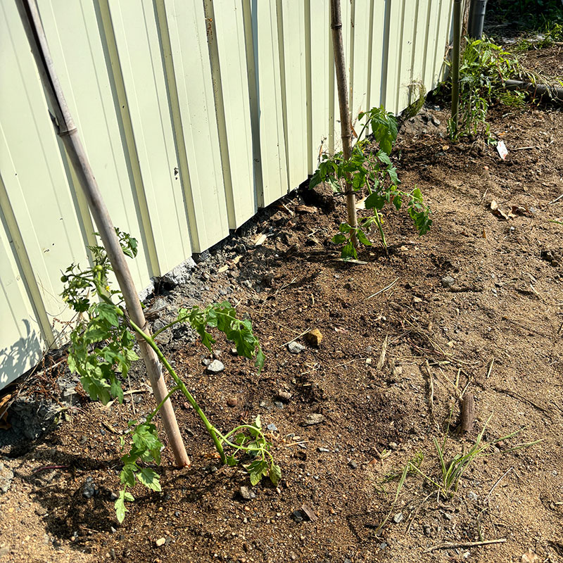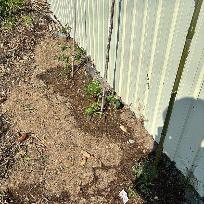 トマトを植える土手は砂地なので毎年全然実がつかない。