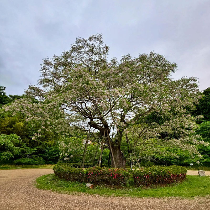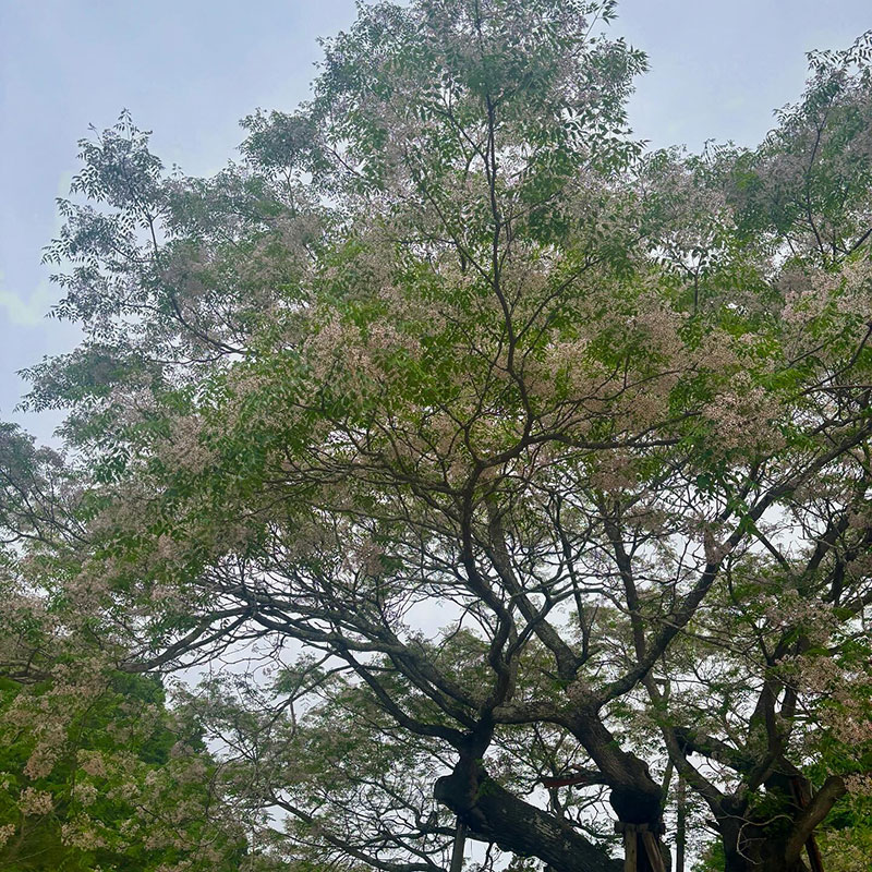 5月にピークなんて季節がまじで壊れてる。巨木の周りにも何本か栴檀の木があるけど、そのうちの一本はほとんど花が落ちていたほど。