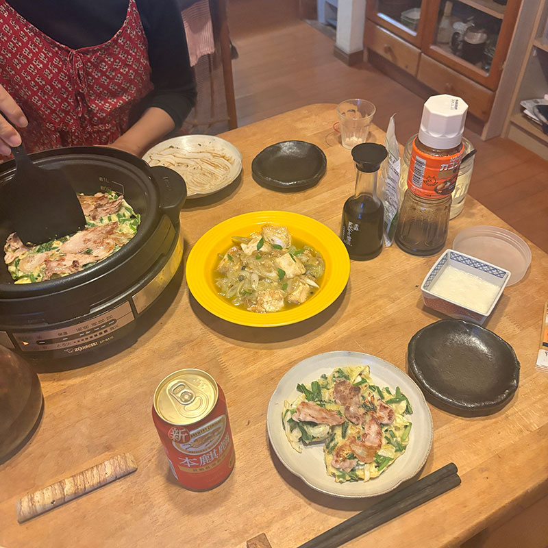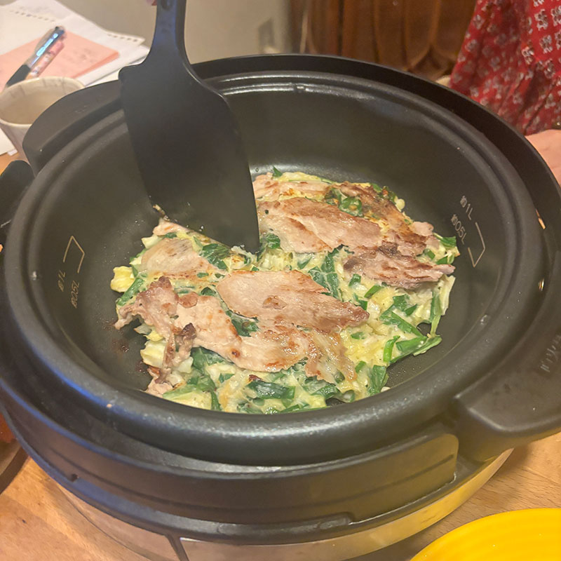 お好み焼き焼いてくれた。