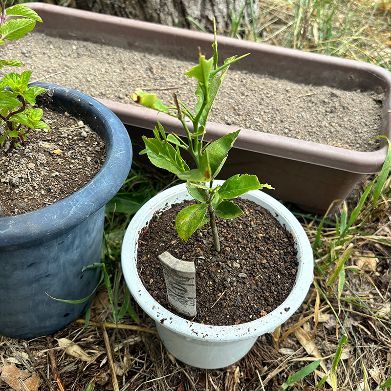食べた種で去年から育ててる四国の文旦。葉の色も成長も悪いので鉢から出して根を少し整理して新たに土を入れた別の鉢で育ててみる
