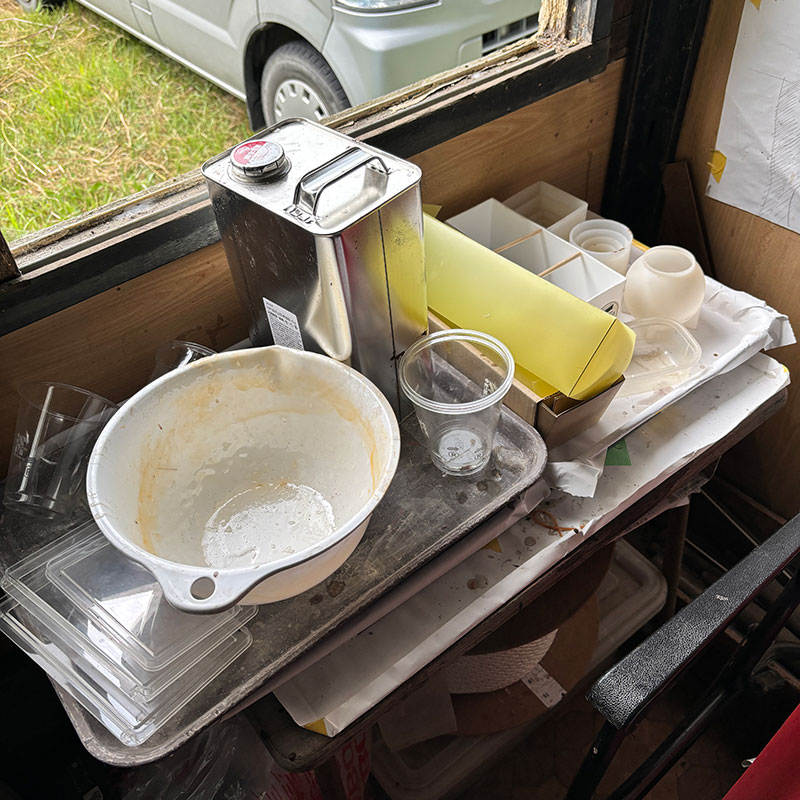 透明樹脂と石を組み合わせた作品は在庫があるのでこの夏は石彫をメインにして作らないつもりなのだけど、ワークショップをやるかもしれないのでいつでも出来るように準備だけしておいた。人によってはかなり苦手な匂いがするのでカミさんの音楽教室を兼ねてる自宅では出来ないし屋外ではホコリが入ってしまうので道具置き場のプレハブ小屋で制作してる。