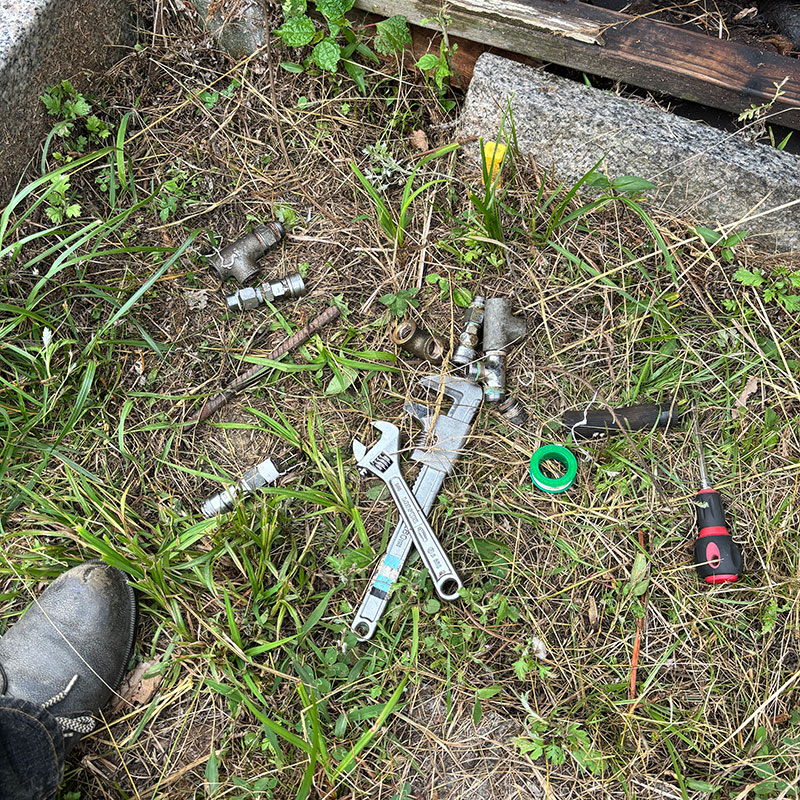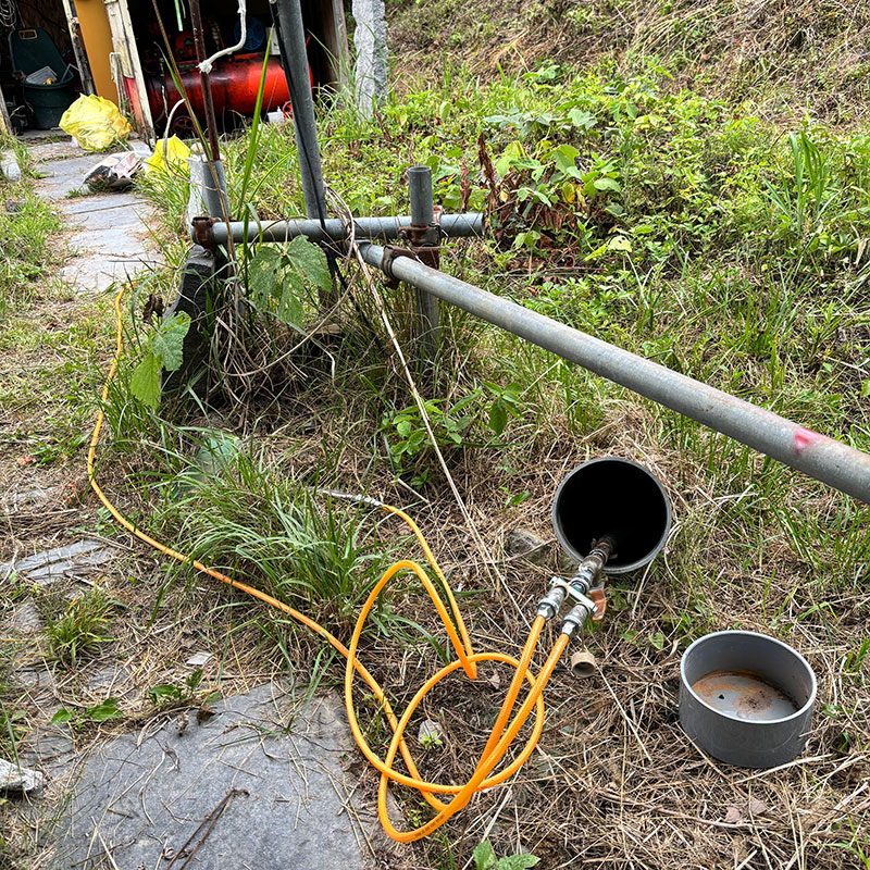 テントまで土の中をエンビ管を埋めてその中を通しているので交換するとなると大変だ。