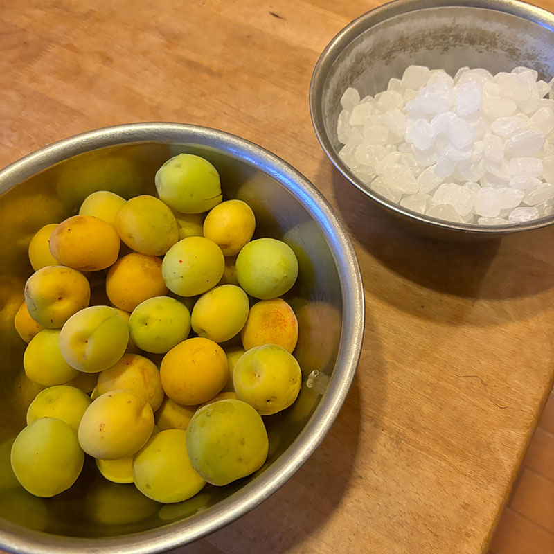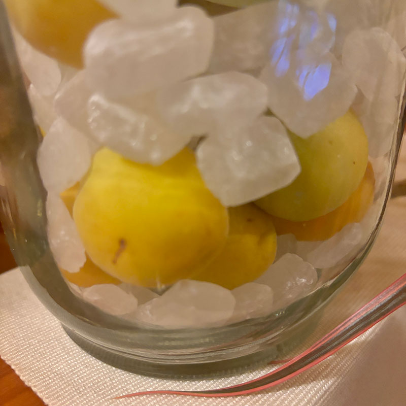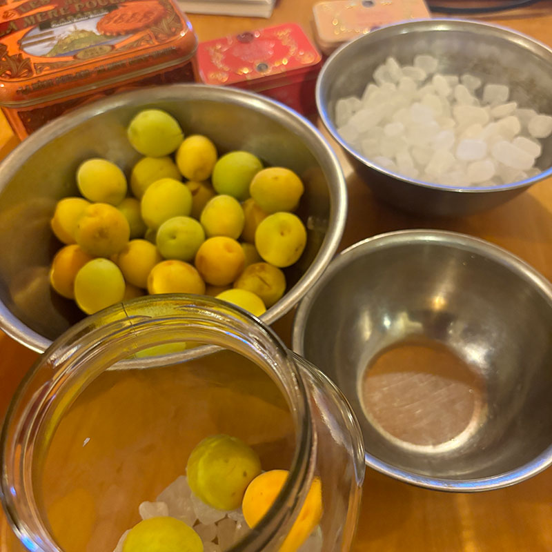 熟して落ちた黄色い梅の実で漬けるとフルーティーで美味しいよ、と教えてもらったので