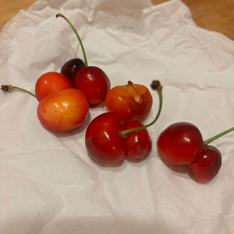 いただいた山形のさくらんぼ。まるで砂糖菓子を食べているよう。