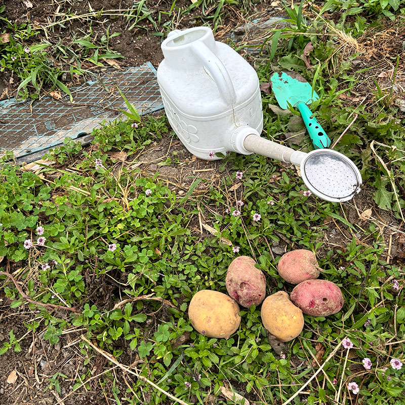 畑の見回りしてたら試し掘りした新じゃが赤いのと白いのいただいた