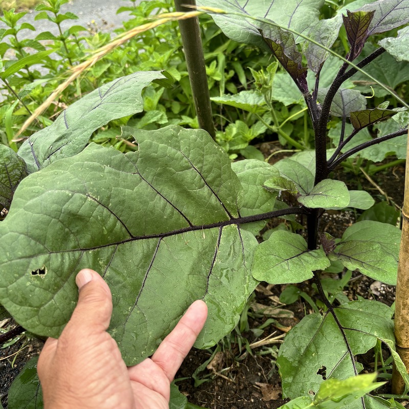茄子にだけは毎朝水をやってる。葉っぱも大きくなってきた