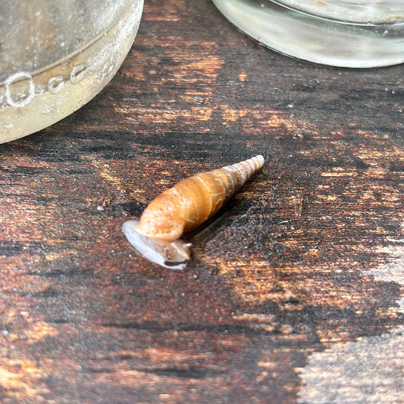 紫陽花の葉の上にこんな巻貝のような生き物が乗ってたけど