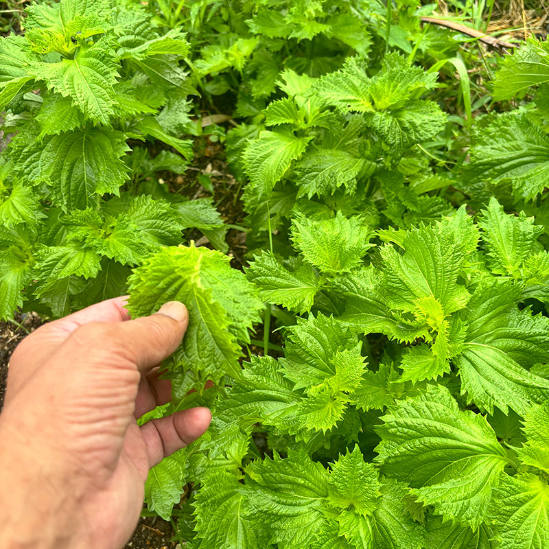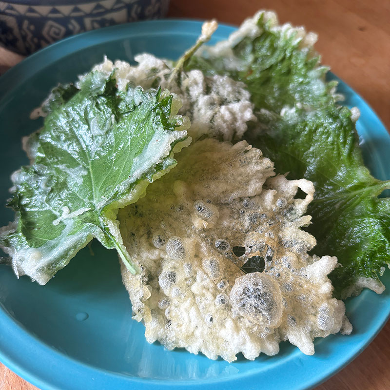 畑の大葉採ってきて細かく切ってトッピングに。