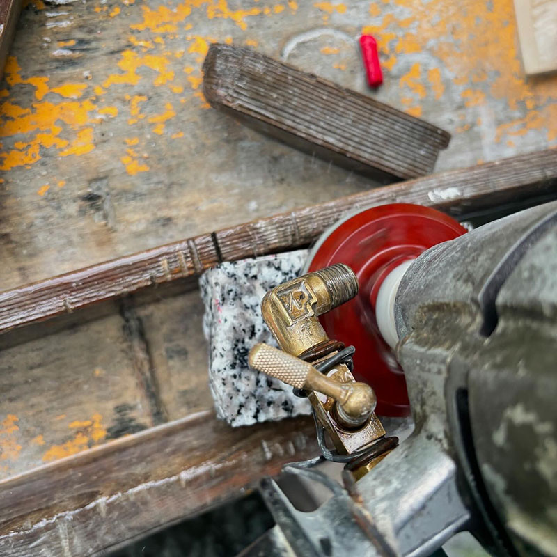 プラスチックでは石彫りの現場では一年持たないだろうから金属ので選んだ。とりあえず削れてる。