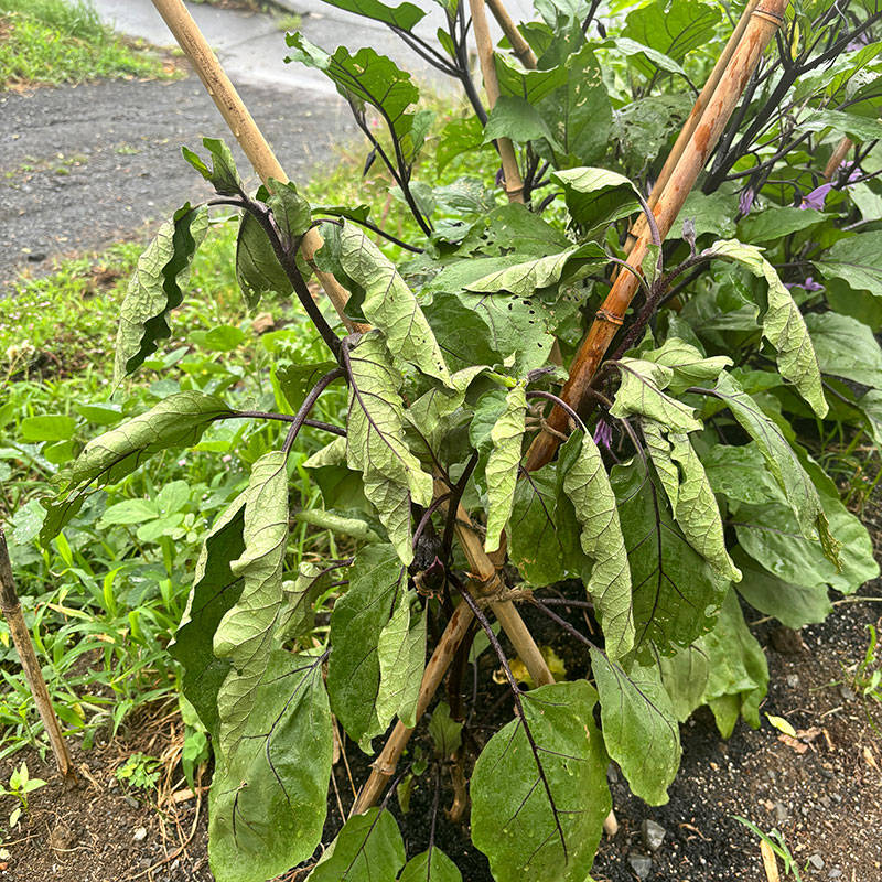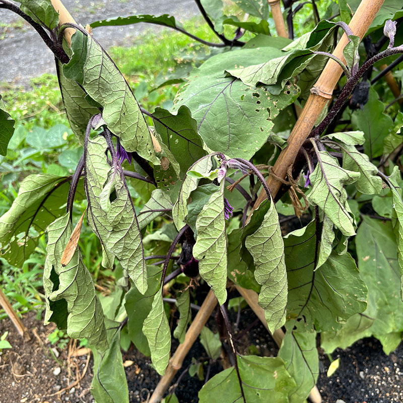 たっぷり雨が降ってくれたというのに一番元気に大きく育っていた茄子が突然。