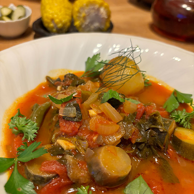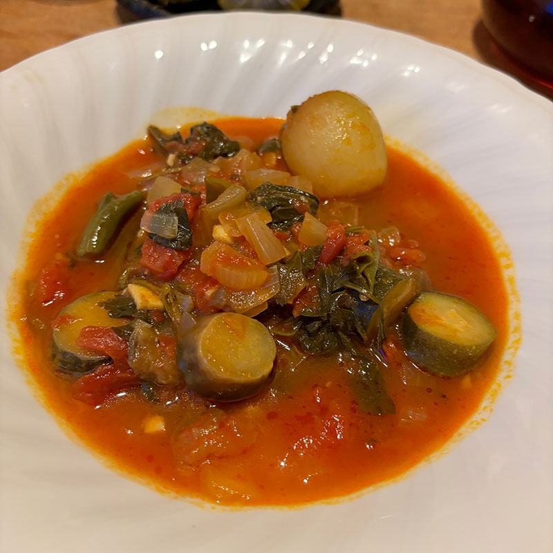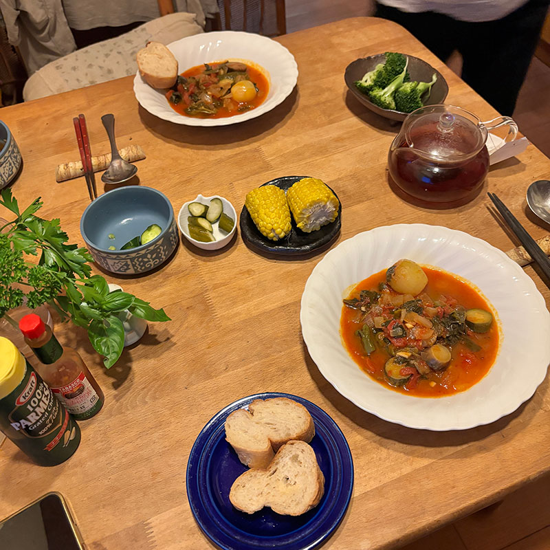 昨日仕込んだ畑の夏野菜のラタトゥイユをバゲットと一緒に。