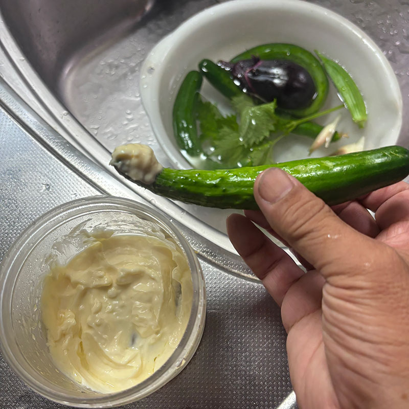 採ったきゅうり、自家製マヨネーズにつけてよくそのまま食べてる