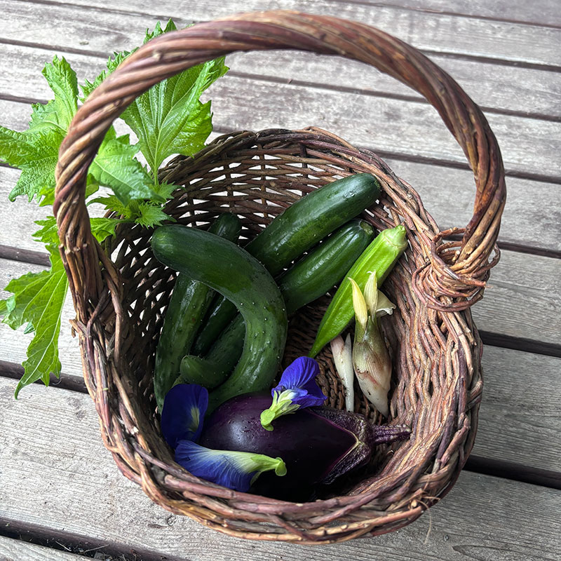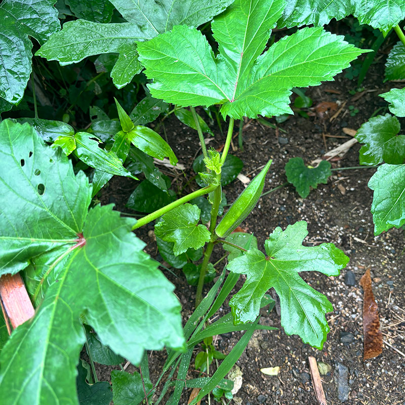 大葉に今季初収穫のオクラも採れたのでそれも。