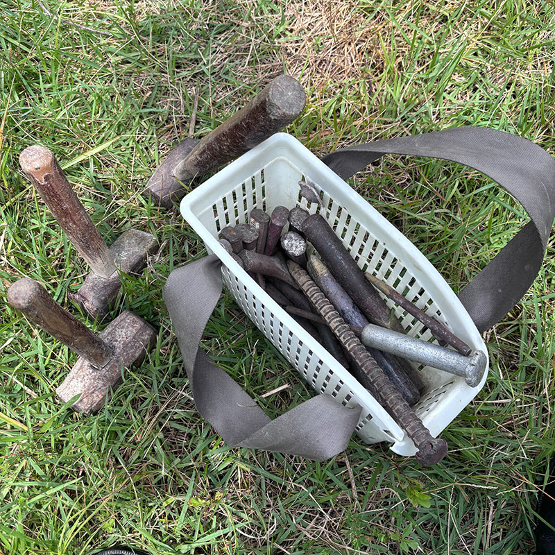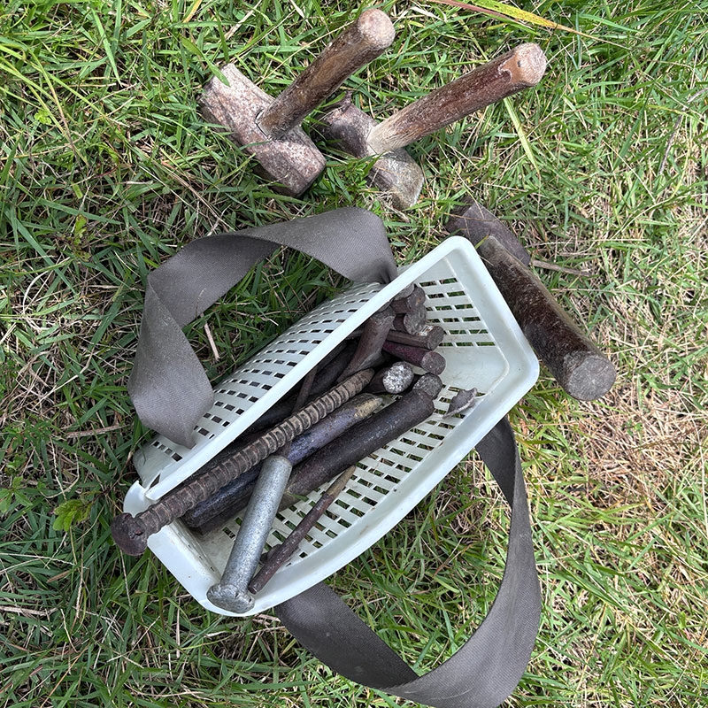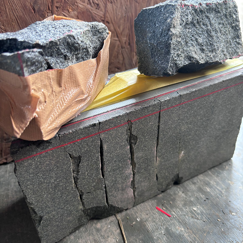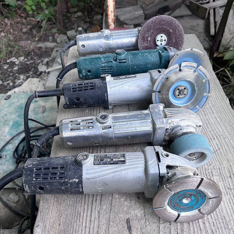 今作ってるのはどれも石を割って構成した作品。どんだけ石割るの好きなんだ、俺・笑