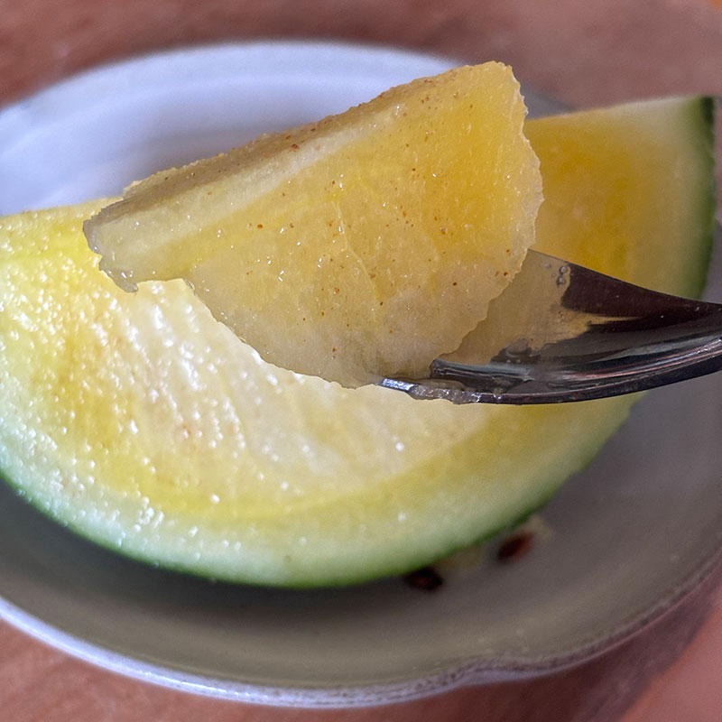 目が全然美味しくない。来年はよく確認して赤いスイカの苗を買う!