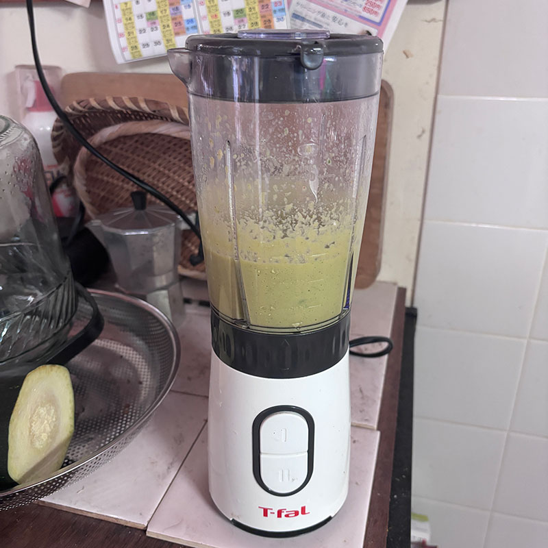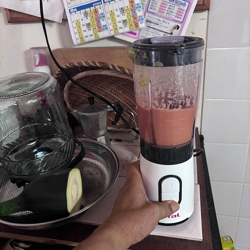T-falのミキサーは底が外れるので洗うのが面倒で作るの躊躇する、て事がなくて済む。さらっと作ってさらっと洗えるから夏中続く。今夜の、今季初ガスパチョ楽しみ。