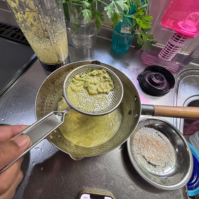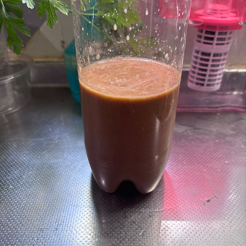 ミキサーに一度に入り切らないので何回かに分けて保存用のペットボトルで全部を混ぜる。